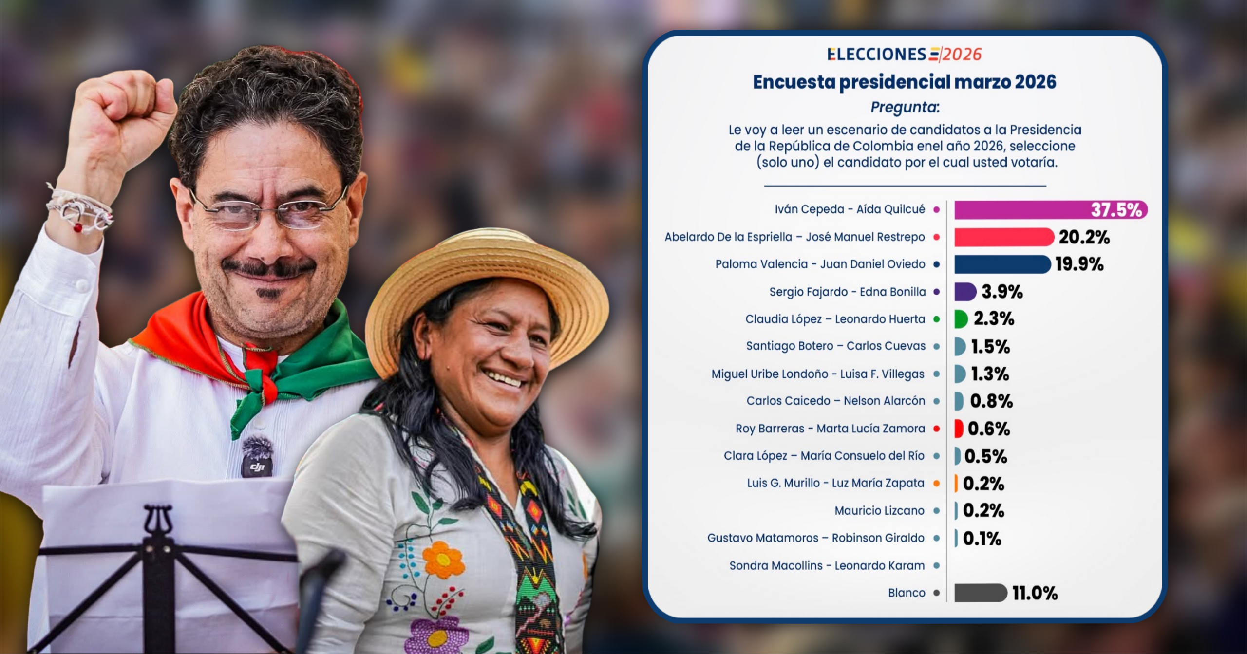 Guarumo – EcoAnalítica: Iván Cepeda y Aida Quilcué siguen liderando intención de voto hacia las presidenciales.
