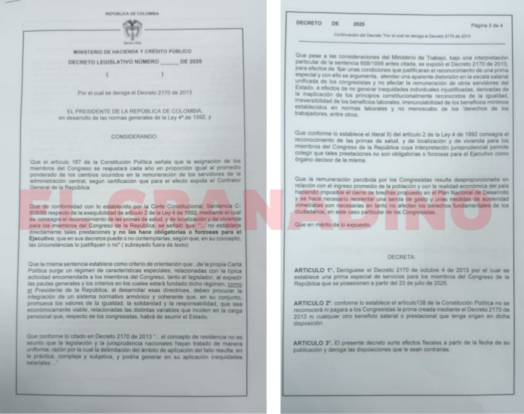 El documento, que se encuentra en fase de borrador y al que se ha tenido acceso de manera oficial, establece la derogación del Decreto 2170 de 2013. Dicha norma, expedida durante la administración de Juan Manuel Santos, fue diseñada en su momento para sustituir las antiguas primas de salud, localización y vivienda, luego de que estas fueran cuestionadas por el Consejo de Estado.